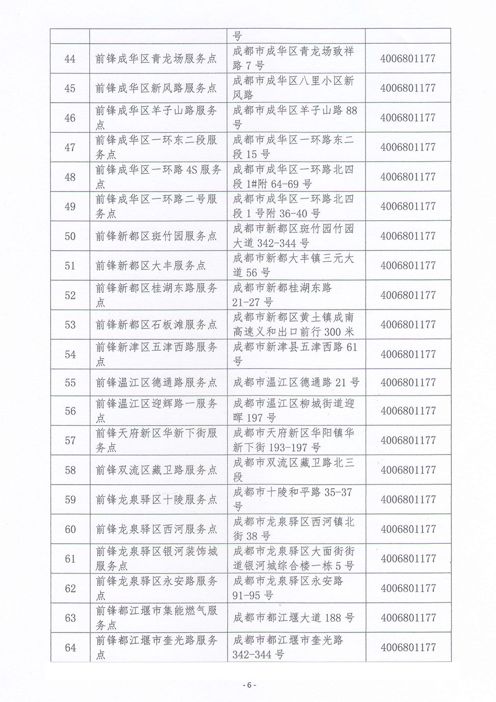 成都前鋒電子有限責任公司 燃氣燃燒器具服務授權網點總覽