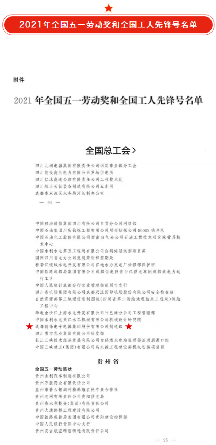 2021年4月27日,中華全國總工會官宣了全國五一勞動獎和全國工人先鋒號的表彰單位和人員名單。