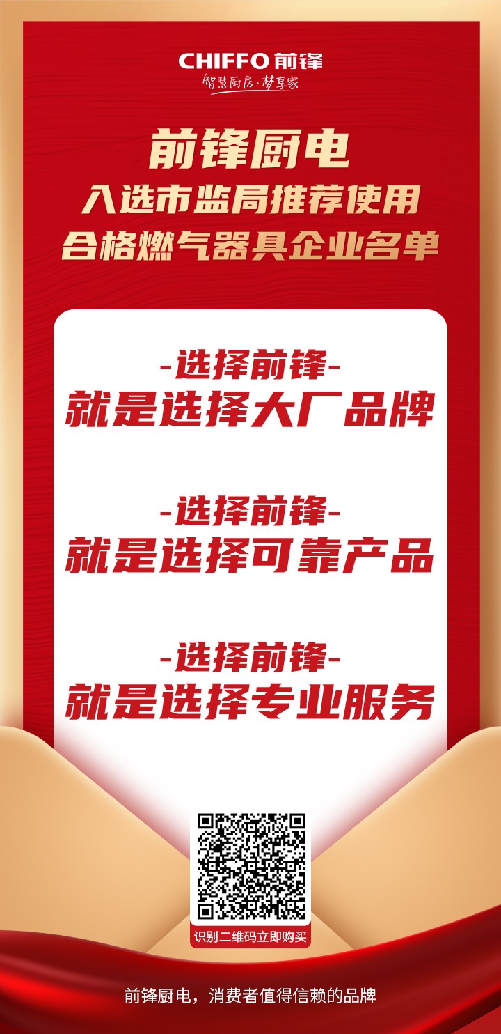 2022年3月,成都市市場(chǎng)監(jiān)督管理局公布了《關(guān)于推薦使用合格燃?xì)馄骶咂髽I(yè)名單》,前鋒廚電憑借先進(jìn)的技術(shù)和安全可靠的產(chǎn)品品質(zhì),入選市監(jiān)局推薦使用的合格燃?xì)馄骶咂髽I(yè)。