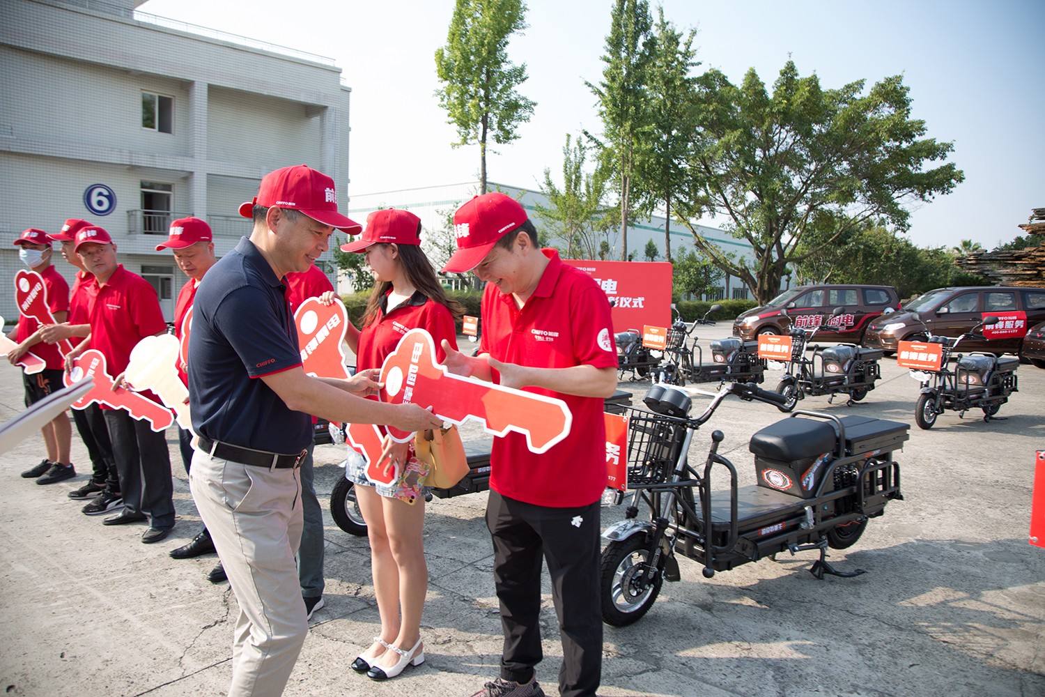 為獎勵(lì)取得卓越成績的經(jīng)銷商,更為了加強(qiáng)服務(wù)品質(zhì),提升終端市場競爭能力,拿下全年銷售目標(biāo)?;顒蝇F(xiàn)場,董事長楊鋼為優(yōu)秀經(jīng)銷商和業(yè)務(wù)人員頒發(fā)了前鋒服務(wù)車“金鑰匙”,開啟了前鋒售后服務(wù)形象的全面統(tǒng)一,服務(wù)質(zhì)量全面提升的新征程。