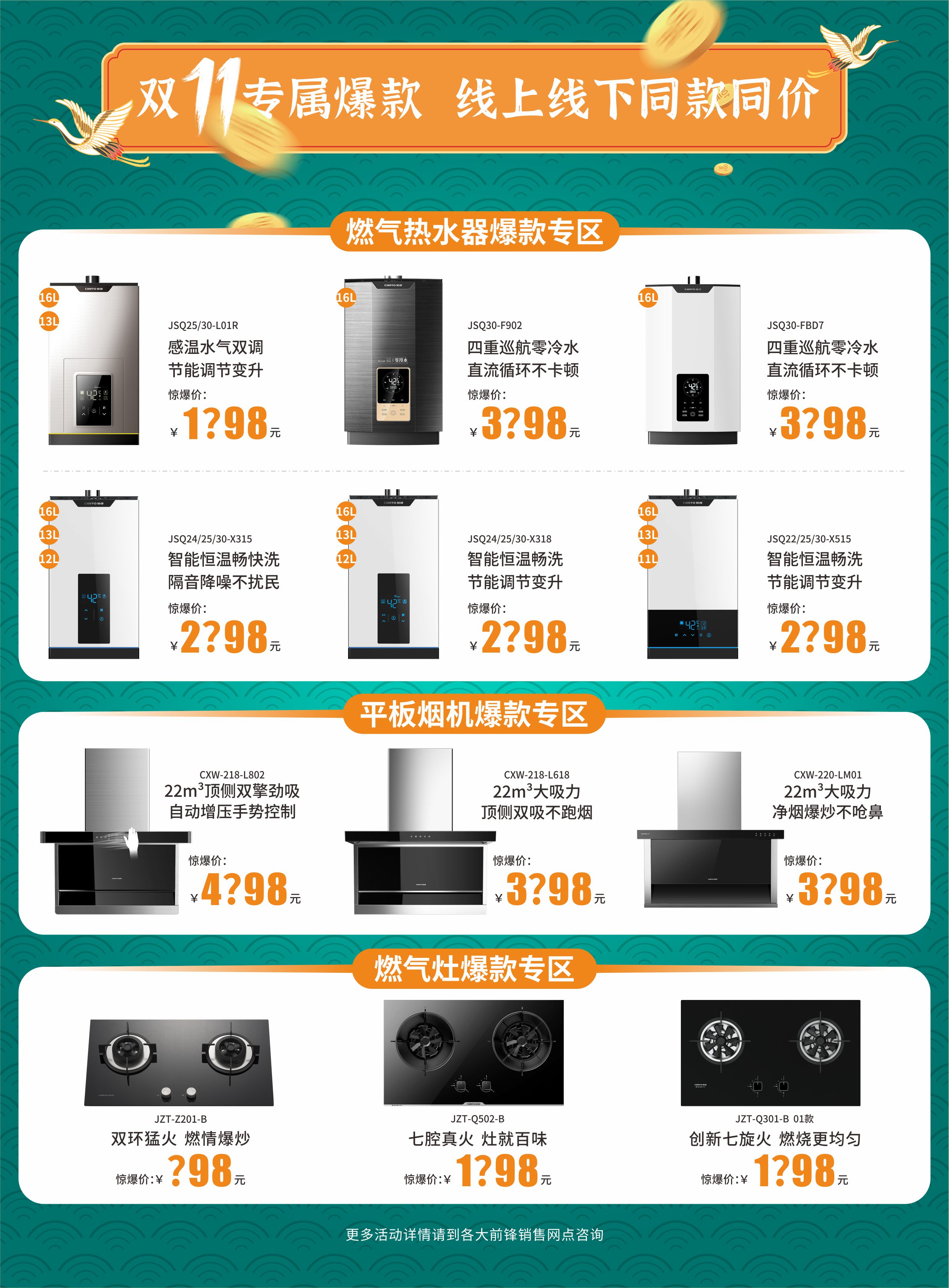 10月20日—11月13日,前鋒廚電火力全開,全國千店同時引爆,線上線下同步開啟。這場廚電“鋒暴”,勢必引爆雙11最強廚電主賣場!