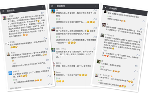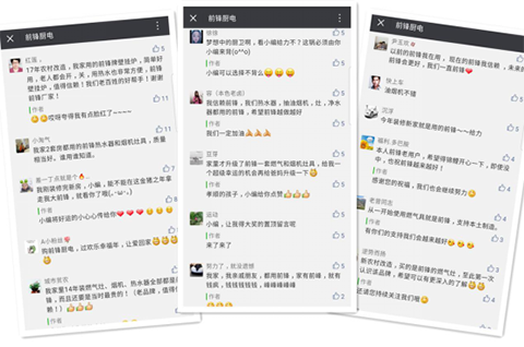 活動剛一發(fā)布,就引發(fā)了“鋒蜜”們的踴躍參與,大家紛紛在朋友圈轉(zhuǎn)發(fā)前鋒錦鯉的圖文,并在微信后臺留言,講述自己與前鋒之間的故事,還紛紛表達(dá)了希望自己能中得頭彩的新年愿望,甚至有網(wǎng)友表示,前鋒這次太夠意思了,簡直不要太壕,這是敦促他們買套新房子來裝這全套廚電新品的節(jié)奏??!