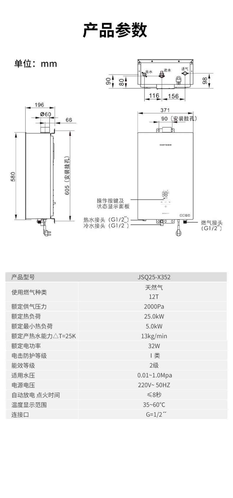 前鋒恒溫燃氣熱水器X352